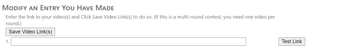 Click on the Review or Modify Entries menu item to examine contest entries you have made (if any). Note that if you have not got to the very last entry screen and clicked on the big SUBMIT button, the entry has not been completed. If there are none, the screen will show: