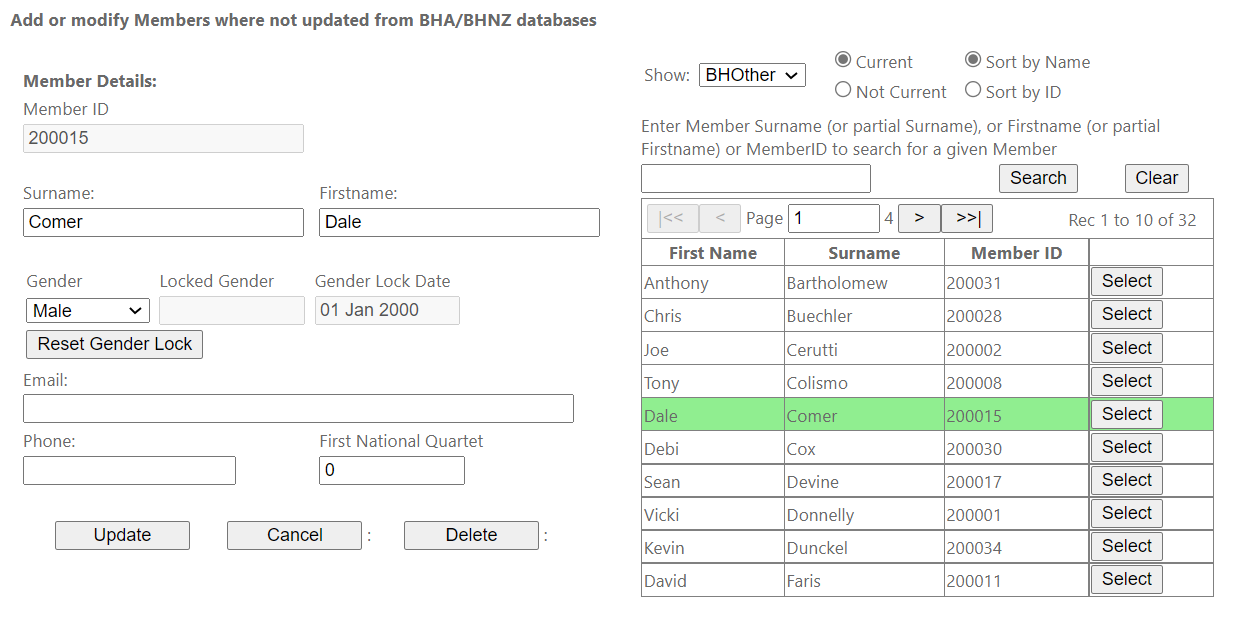 The members database gives access to the members database on the contests website. Although this is primarily a reflection of the BHA and BHNZ member databases, there are other "members" who are not members of these organisations: