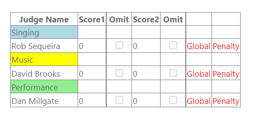 In the case of a global penalty, eg contestant withdrawn, the display may show this - scoring is not possible (unless the ADM Judge clears the penalty).
