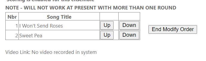 If the ADM Judge has detected the songs are being sung in the reverse order, you can expect the ADM Judge will have corrected this before enabling the scoring. The Music judge, particularly, should be checking that the ADM Judge does have the order correct.