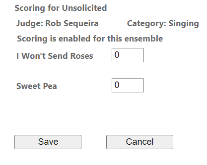 Enter the scores and click Save. (If you are on the wrong performance or don't want to save the scores, click the Cancel button).